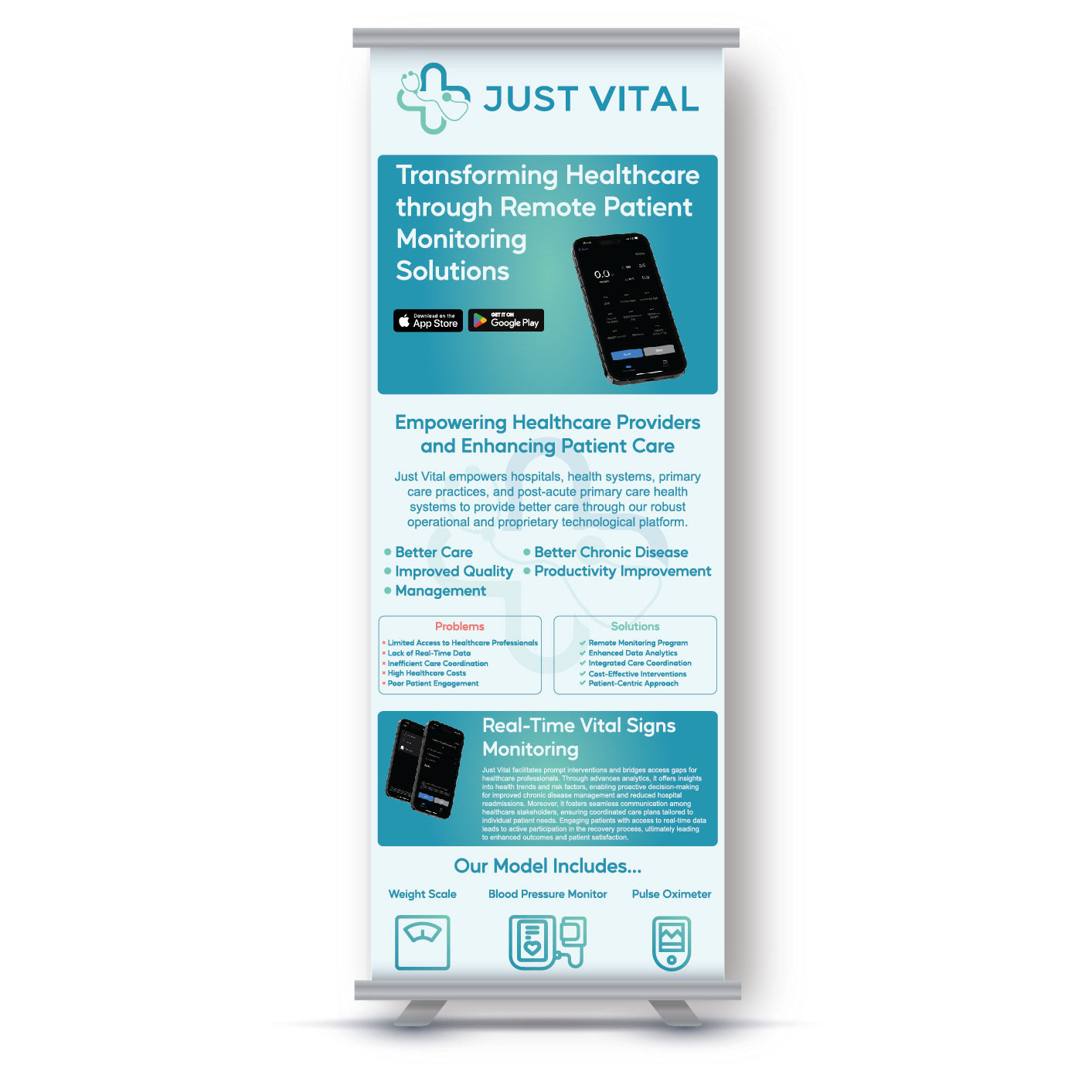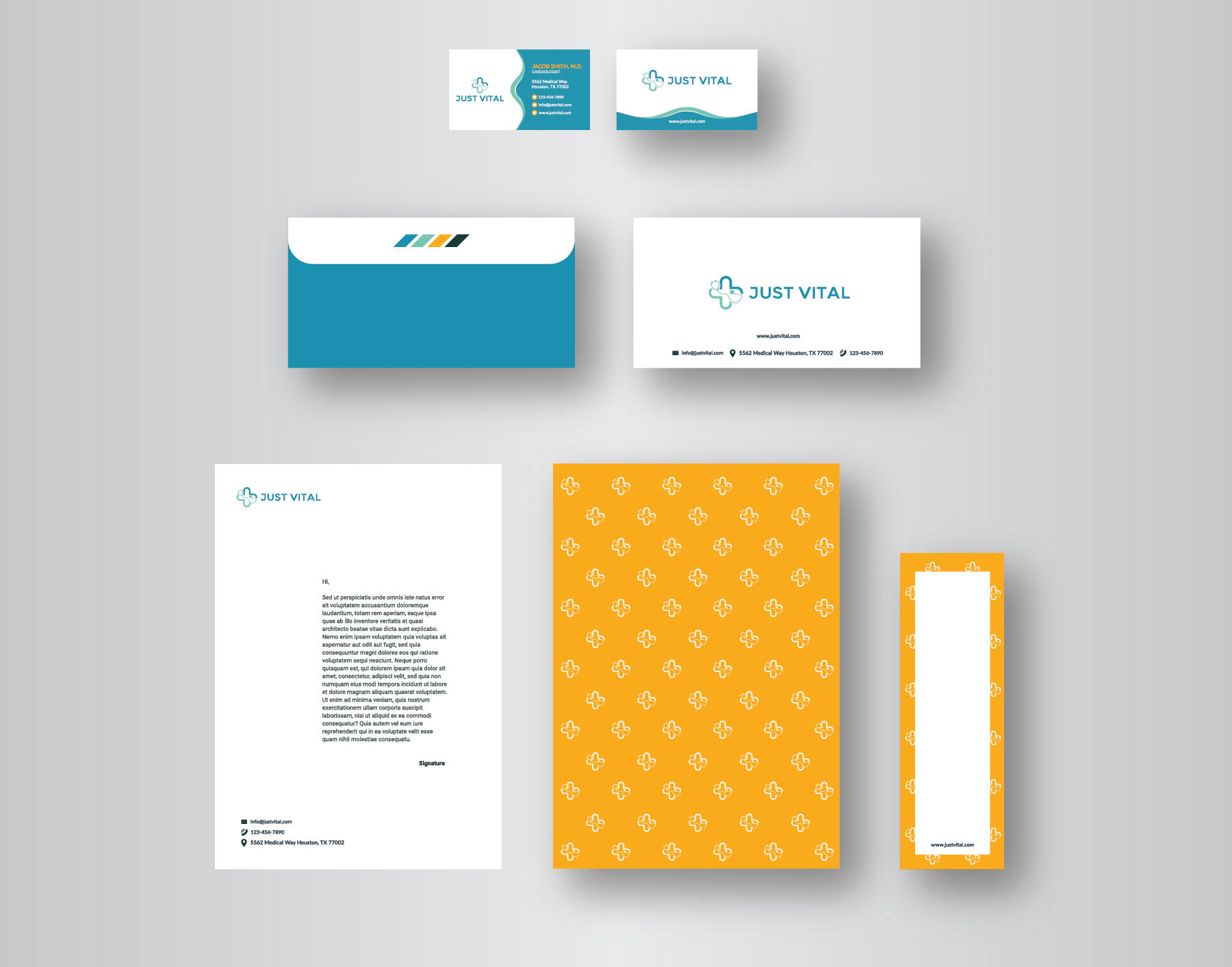 The private medical provider Just Vital needed some office stationary items for their new re-branding and a tradeshow banner to showcase their new app.